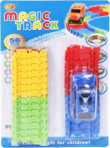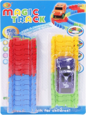 Uživajte u satima zabave s ovom dječjom stazom koja dolazi s autićem duljine 8 cm. Staza ne sadrži svjetlosne ni zvučne efekte, što je čini pogodnom za mirnu igru. Autić je dostupan u četiri boje: zelenoj, žutoj, plavoj i ljubičastoj. Zahtijeva 1x AA bateriju, koja nije uključena u pakiranje.