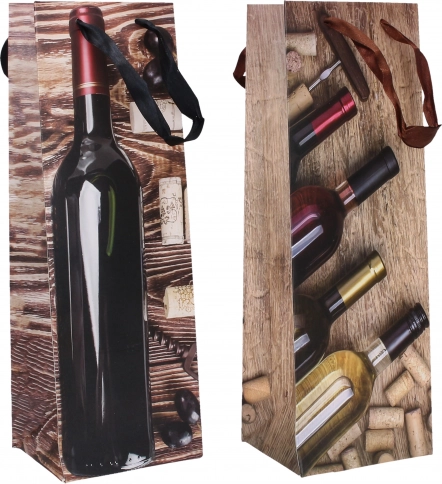 Elegantna poklon-vrećica za bocu u srednjoj veličini razveselit će u svakoj prilici. Ima praktične dimenzije 12 × 35 × 10 cm i dostupna je u 4 različita cjelogodišnja motiva za stilsko pakiranje vina ili drugih boca.