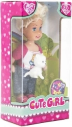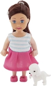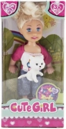 Lutka s plavom kosom i malim ljubimcem – idealna za interaktivnu igru.