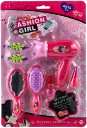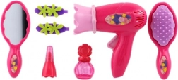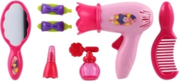 Set sadrži sedam usklađenih dodataka, uključujući ružičasto sušilo za kosu i druge potrepštine za kreativnu i sigurnu igru. Proizvodi su izrađeni od kvalitetne plastike koja je izdržljiva i sigurna za djecu od tri godine.