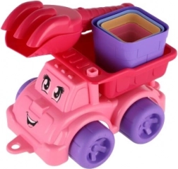 Šareni plastični kamion s veselim izrazom savršen je za prijevoz pijeska i razvoj dječje mašte.