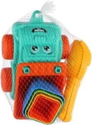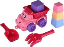 Uz ovaj šareni set za pijesak vaše će dijete uživati u satima zabave na plaži ili u pješčaniku. Set sadrži kamion s teretnim dijelom, lopaticu, grabljice i 4 kalupa za pijesak. Sve je izrađeno od trajne plastike i lako se prenosi u praktičnoj mrežici. Idealno za razvoj motorike i kreativnosti.