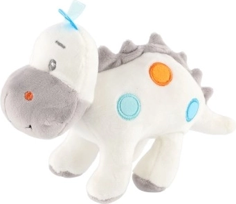 Ovaj plišani dinosaurus nije samo igračka i vjeran suputnik, već i predivna dekoracija koja će uljepšati svako dječje kraljevstvo. Izrađen je od nježnog i mekanog materijala, što ga čini idealnim plišancem za djecu svih uzrasta. Svijetle šarene točkice u kombinaciji bijelih i sivih nijansi daju dinosauru jedinstven izgled.