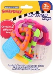 Otkrijte zabavan set ključeva osmišljen za sigurno grickanje i igru. Različite površine pružaju olakšanje pri nicanju zubića, zveckajući elementi potiču slušnu percepciju, a žive boje stimuliraju vid. Lagana konstrukcija olakšava držanje malim ručicama.