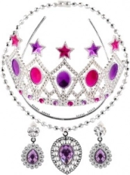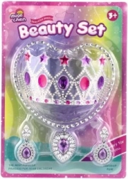 Stvorite nezaboravne bajkovite trenutke s elegantnim setom za male kokete. Lagana plastična kruna sa svjetlucavim kamenčićima upotpunjena je ogrlicom i naušnicama u usklađenim bojama, koje svakom kostimu daju kraljevski štih. Set je osmišljen za sigurno kućno igranje, maškare i dječja fotografiranja.
