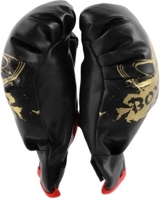 Rukavice imaju atraktivan dizajn s crnom bojom, zlatnim natpisom i crvenim detaljima koji daju luksuzan izgled. S dužinom oko 20 cm, savršen su izbor za male ruke, a zaštita koju pružaju omogućava djeci da sigurno igraju i uče boks.