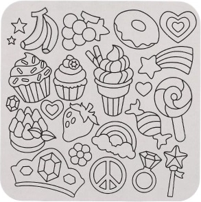 Sadrži različite folije i naljepnice s motivima kao što su cupcakes i cvijeće.