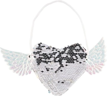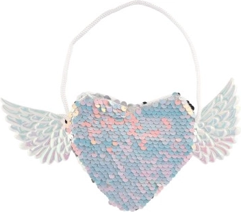 Dodajte svom outfitu jedinstven izgled s ovom čarobnom torbicom koja ima oblik srca i krila sa strane. Mijenjajte boje šljokica prema svojoj volji - birajte između elegantne srebrne ili razigrane ružičasto-plave kombinacije. Torbica je idealna za pohranu sitnica koje želite imati uvijek pri ruci.