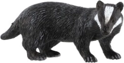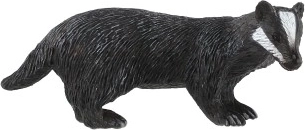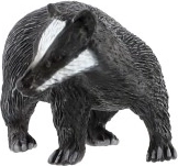 Ova figurica prikazuje europskog jazavca (Meles meles) s karakterističnim bijelim prugama na glavi i tamnim tijelom. Zahvaljujući realističnim detaljima pomaže djeci lako prepoznati vrstu i proširiti znanje o šumskim životinjama, bilo u nastavi ili igri.