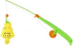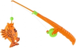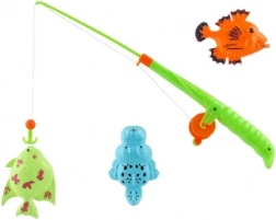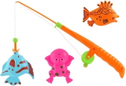Zabavna magnetička igra pecanja za djecu s plastičnim štapom duljine 34 cm i trima životinjicama (2 ribice i 1 žaba). Potpomaže finu motoriku, koordinaciju oko–ruka i natjecateljsku igru s prijateljima. Šareno izvedenje privlači pažnju na prvi pogled i jamči puno zabave za djecu od 3 godine.