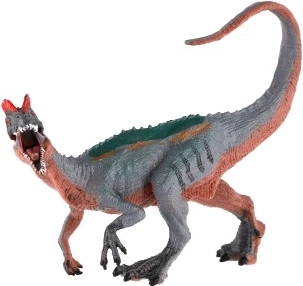 Plastična figurica Dilophosaurusa vjerno prikazuje jednog od najzanimljivijih mesoždera donje jure, poznatog po paru polukružnih grebena. Realistične boje, precizna tekstura kože i dinamičan stav potiču maštovitu igru i razvijaju interes za dinosaure.