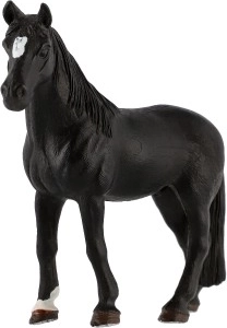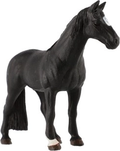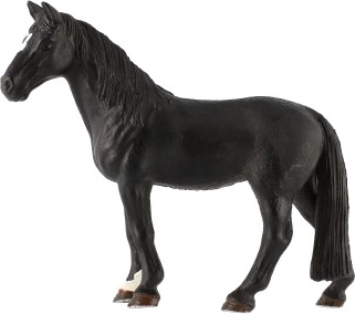 Ovaj crni konj prikazan je s velikom pažnjom na detalje, uključujući grivu i rep, što pridonosi realističnom izgledu.
