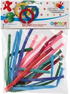 Modelirajući baloni na napuhavanje u mješavini boja. Pakiranje sadrži 10 kom. Promjer balona je 5 cm, duljina do 150 cm.