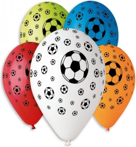 U trenu ćete svojoj proslavi dodati sportsku atmosferu. Ovi baloni na napuhavanje s tiskom nogometnih lopti različitih veličina idealni su za rođendane, tematska događanja i navijanje. Zahvaljujući promjeru 30 cm (12") lijepo će se istaknuti u prostoru.
