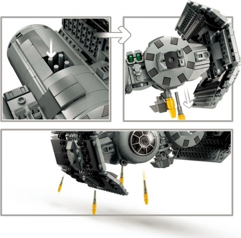 LEGO STAR WARS TIE Bomber donosi autentičan dizajn s kugličnim kokpitom i kultnim krilima koji će oduševiti male i velike obožavatelje. Zahvaljujući detaljnoj izradi, ispuštajućim torpedima i pucačima spreman je za intenzivne svemirske bitke ili izlaganje na polici.