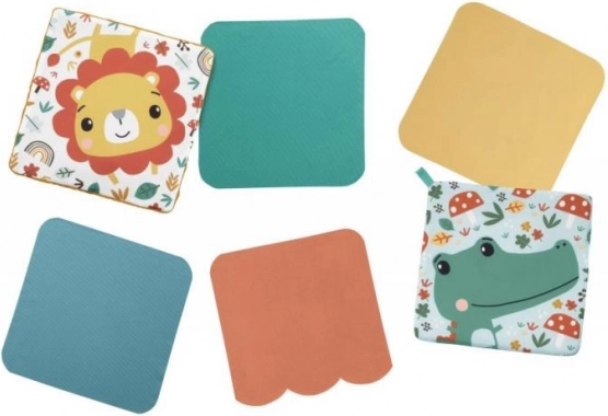 Set šarenih tkanina s razigranim motivima potiče na izvlačenje i stiskanje, čime razvija finu motoriku i taktilne osjete.