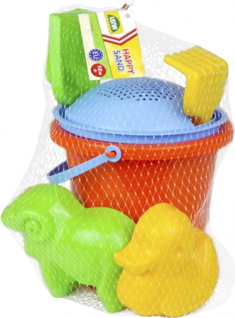 Lena set za pijesak 7 dijelova za djecu od 1 godine. Kantica, sito, lopatica, grabljice i 3 kalupa. Izdržljiva plastika, proizvedeno u Češkoj. Sjajna zabava u pješčaniku.