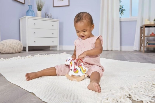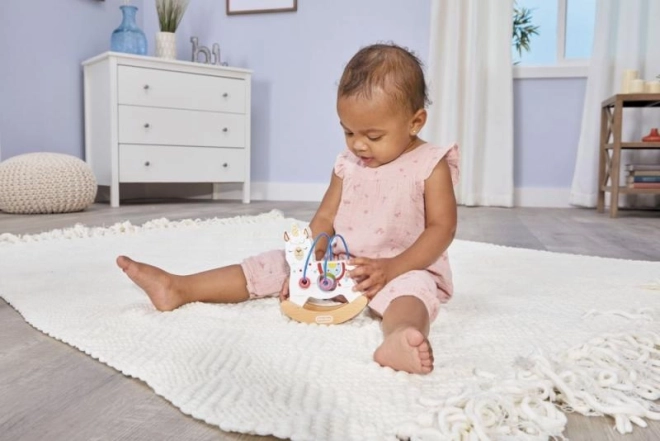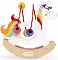 Little Tikes donosi jedinstvene drvene igračke koje kombiniraju jednostavnost i kreativnost. Ova ljuljajuća životinjica odličan je izbor za mališane koji će uživati ne samo u zabavi već i u smislenom razvoju. Igračka je opremljena šarenim žičanim labirintom s perlicama koje potiču dječju maštu i koordinaciju.