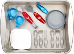 Set uključuje 13 komada pribora (tanjuriće, šalice, pribor za jelo, lonac, tavu itd.) koji potiču samostalnost, koordinaciju oko–ruka i socijalne vještine tijekom igre s prijateljima.