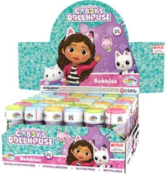 Uljepšajte dječji dan bublifukom GABBY’S DOLLHOUSE. Praktična bočica od 60 ml lako se drži, a zahvaljujući integriranoj puhalici djeca odmah mogu stvarati mnoštvo sjajnih mjehurića. Šareni poklopac dodatno sadrži ugrađenu mini igru koja zabavlja i na putu.