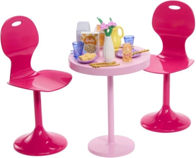 Namještaj za lutke – stol i stolice s dodacima, plastika, 12 cm