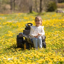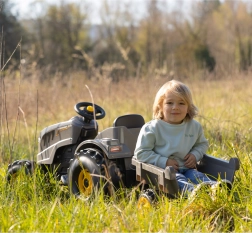 Traktor raste s vašim djetetom – sjedalo se podešava u 3 položaja, pa u vožnji mogu uživati djeca različite visine. Lančani pogon je pouzdan i zaštićen, veliki plastični kotači savladavaju travnjak i vrtne staze. Mehanička truba dodaje zabavu i sigurnost, a usklađeni kolor detalji upotpunjuju moderan izgled.