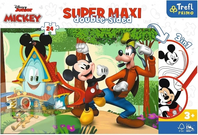Puzzle Super Maxi 24 Vesela kuća i prijatelji donose djeci kombinaciju stvaranja, logike i radosti zbog vlastitog rezultata. Prednja strana nudi šarenu ilustraciju s MICKEYJEM i njegovim prijateljima, a stražnja strana iznenađuje bojankom i pametnom igrom s elementima bojanja – dvostruko više zabave u jednom proizvodu.
