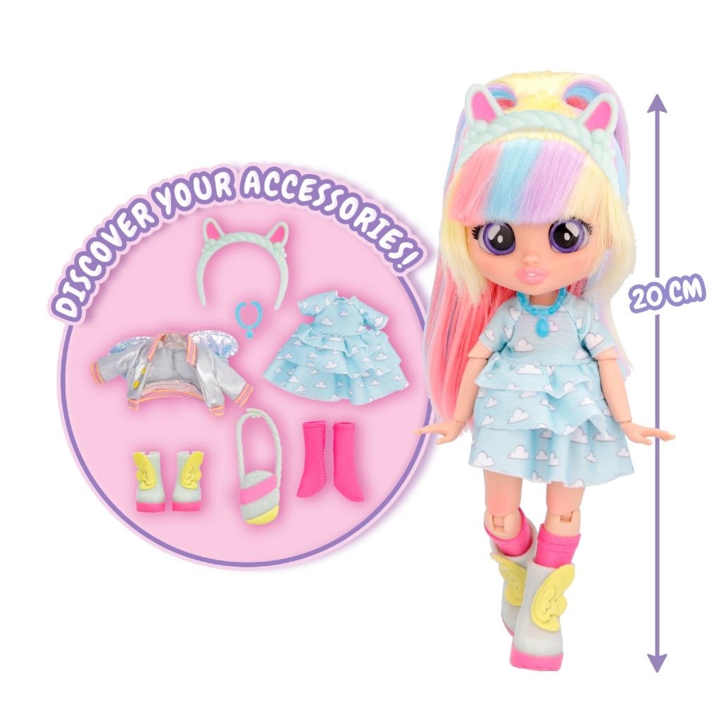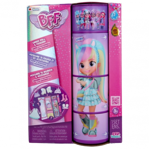 Upoznaj nove najbolje prijateljice BFF! Tvoje omiljene junakinje iz filma Cry Babies Čarobne suze sada su odrasle i postale tinejdžerice! Imaju 13 godina i čeka ih mnoštvo avantura. U kolekciji je 6 lutki koje možeš skupljati, a svaka je odjevena u moderno ruho prema najnovijim modnim trendovima. Visoke su 15 cm, imaju šarenu kosu, kristalne oči i potpuno pokretno tijelo. Koju ćeš najbolju prijateljicu odabrati? Okreni tubu i saznaj! Raspakiraj i otkrij njihov ormar s više od 9 iznenađenja: 2 komada odjeće, torbu, traku za kosu ili rajf, par usklađenih cipela s čarapama i ogrlicu! BFF lutke imaju svilenkastu najlonsku kosu i doista modernu odjeću! Svaka lutka je zapakirana u jedinstvenu kutiju koja je ujedno i njihov ormar! Okretanjem dijelova tube otkrivaj različite poze koje tvoja najbolja prijateljica može zauzeti!