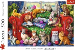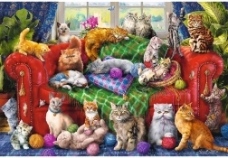 Uživajte u opuštanju uz slaganje dojmljive slagalice s motivom preslatkih mačaka na kauču. Puzzle marke TREFL nude 1500 dijelova, a nakon slaganja dimenzije su približno 85 × 58 cm – idealno za uokvirivanje i izlaganje.