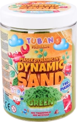 Predstavljamo vam Tuban kinetički pijesak, savršenu zabavu za djecu i odrasle! Ovaj zeleni pijesak se ne prestaje kretati i lako se prelijeva među prstima. To je izvrsna alternativa igri u pješčaniku koju možete uživati bilo kada kod kuće ili u školi.