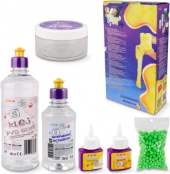 Set omogućuje djeci da postanu mali kemičari i promatraju kako se tekući sastojci miješanjem pretvaraju u potpuno drugi oblik. Gotovu sluz možete mijesiti, razvlačiti i dijeliti, čime se razvijaju manualne vještine i fina motorika.