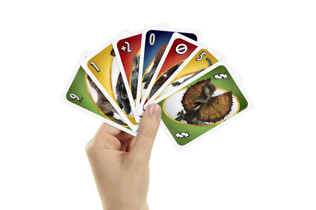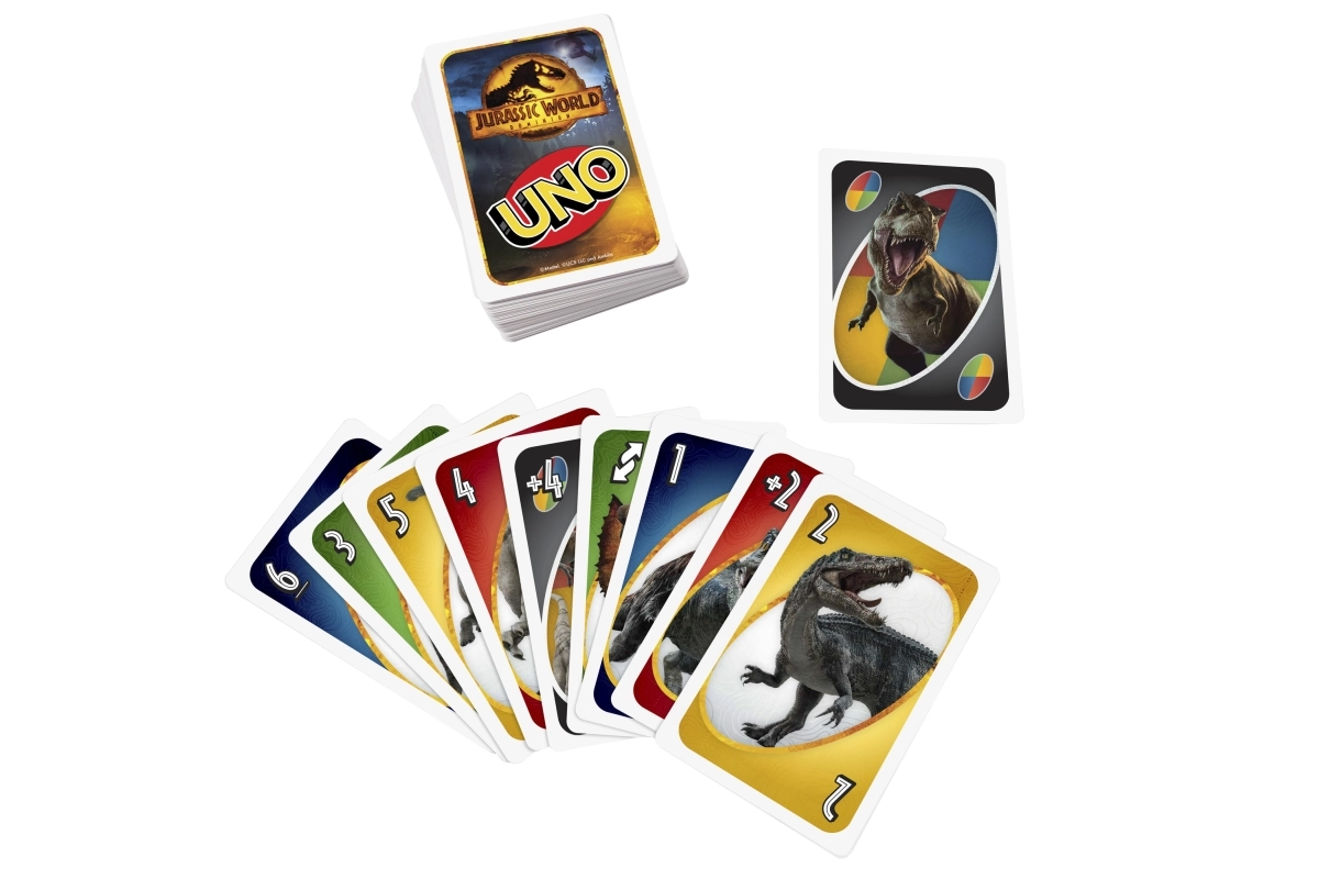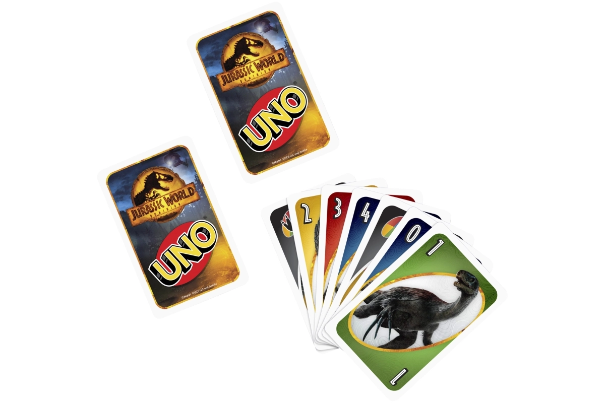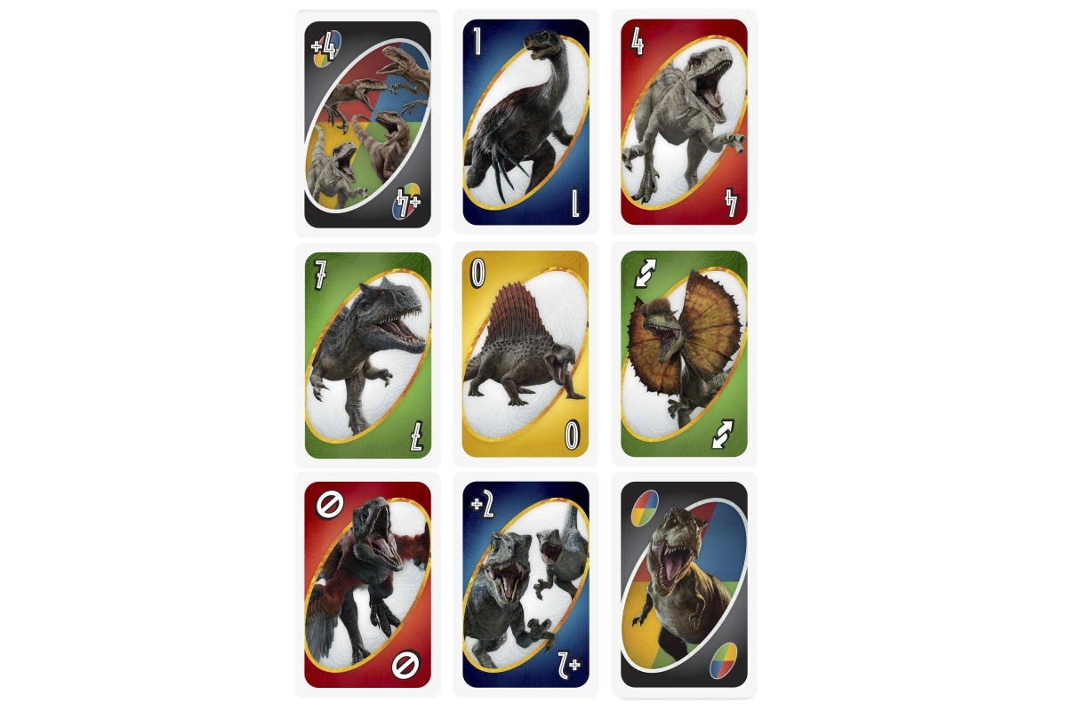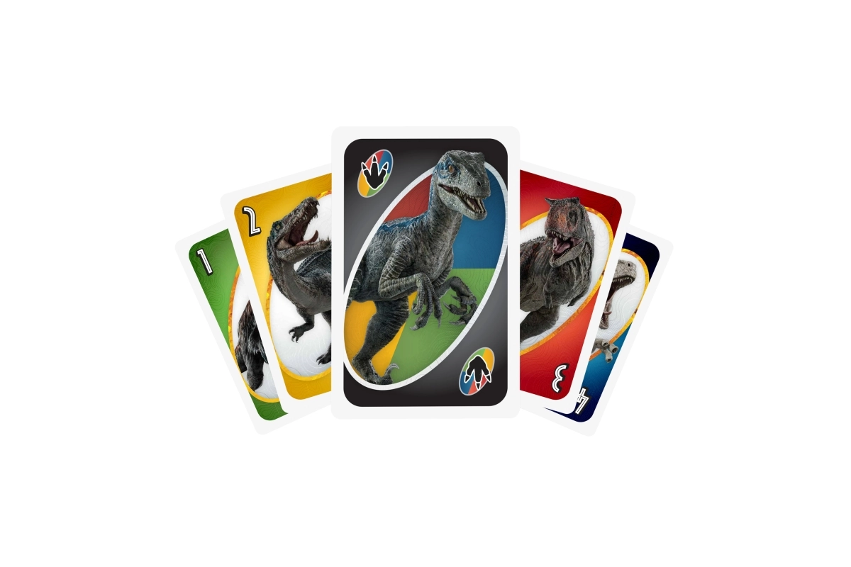 UNO Jurassic World spaja provjerenu igrivost s atraktivnim ilustracijama dinosaura. Igrači odbacuju karte prema boji, broju ili simbolu, igraju akcijske karte i nastoje se prvi riješiti cijele ruke. Posebno pravilo „bijeg“ dodaje napetost – njime možete blokirati odigranu protivnikovu dino akcijsku kartu.