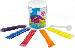 U setu se nalazi sve potrebno za trenutnu zabavu: pet upečatljivih boja pijeska, mjerica za precizno doziranje i posudica za vodu. Napunite posudicu, uspite pijesak i promatrajte kako se ponaša na površini i pod vodom. Zatim ga jednostavno izvadite i uvjerite se da je i dalje suh.