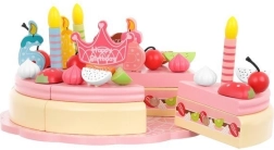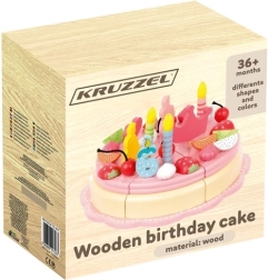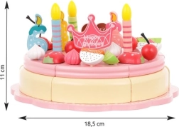 Ovaj kolač izrađen je od kvalitetnog drveta, koje je sigurno za djecu i nudi bezvremensku ljepotu i izdržljivost. Dijelovi kolača povezani su magnetima, što omogućava djeci da „režu“ kolač i poslužuju ga na priloženim tanjurima uz pomoć pribora.
