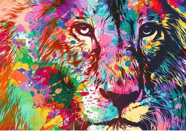 - Motiv: Šareni lav – izražajna, moderna ilustracija puna boja.