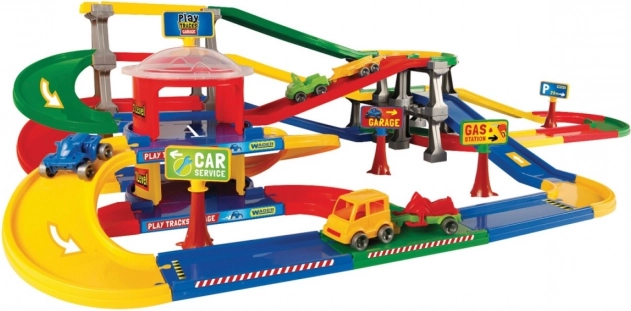 Ovaj parkirni kompleks iz serije Play Tracks Garage ima laganu konstrukciju koja omogućuje sastavljanje staza u različitim oblicima i tako obogaćuje igru djeteta. Set sadrži dvoetažno parkiralište i jedanaestmetarsku stazu.
