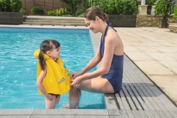 Dječji plivački prsluk Bestway dizajniran je kako bi pružio maksimalnu sigurnost zahvaljujući svojim trima neovisnim zračnim komorama. Ovratnik za disanje osigurava da glava ostaje iznad površine vode. Zahvaljujući podesivim kopčama, lako se oblači i dobro prianja uz tijelo djeteta. Prsluk je ukrašen veselom plavom hobotnicom, koja privlači pažnju i motivira djecu na plivanje.