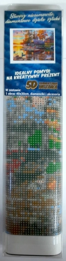 U setu ćete pronaći sve potrebno za trenutačno stvaranje: predtisnuto platno s ljepljivim slojem, aplikacijsko pero, obojene kamenčiće, posudicu i vosak. Okvir nije uključen u pakiranje.
