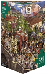 Kreativna puzzle zapakirana u nekonvencionalnu trokutastu kutiju donosi sjajnu zabavu za djecu i odrasle. Slagalica od njemačkih umjetnika Doro Göbela i Petera Knorra prikazuje živahnu i zabavnu scenu povorke.