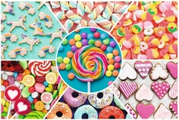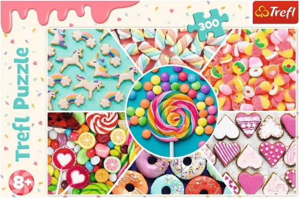 Uživajte u slaganju puzzli od 300 dijelova s motivom slatkiša brenda Trefl, izrađenih od vrhunskih materijala.