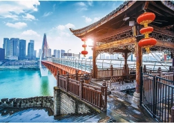 - Realističan motiv: moderno panoramsko zdanje metropole Chongqing.