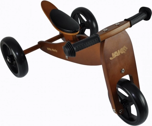 Bicikl JAKE idealno je rješenje za mališane koji tek počinju učiti voziti bicikl i još ne mogu održavati ravnotežu na dva kotača, ali se već žele kretati samostalno. Široki trag kotača osigurava iznimnu stabilnost, sigurnost i udobnost pri vožnji u zatvorenom i na otvorenom, npr. u vrtu, a lagana, ali čvrsta konstrukcija prikladna je za sve uvjete. Pjenasti kotačići osiguravaju udobnu vožnju i ne zamaraju našeg malog vozača.