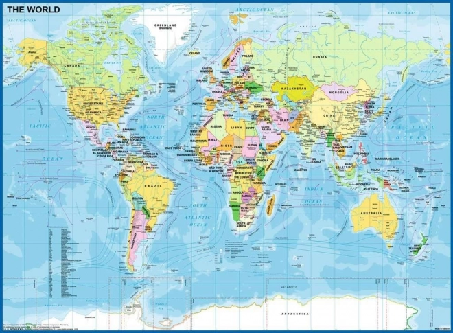 - Edukativni motiv karte svijeta potiče pregled kontinenata, oceana i država.