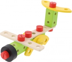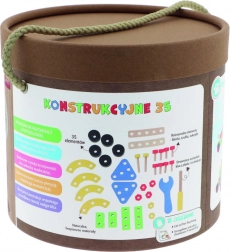 U setu je 35 elemenata: kocke, vijci, alat i priručnik s prijedlozima za sastavljanje najrazličitijih konstrukcija.