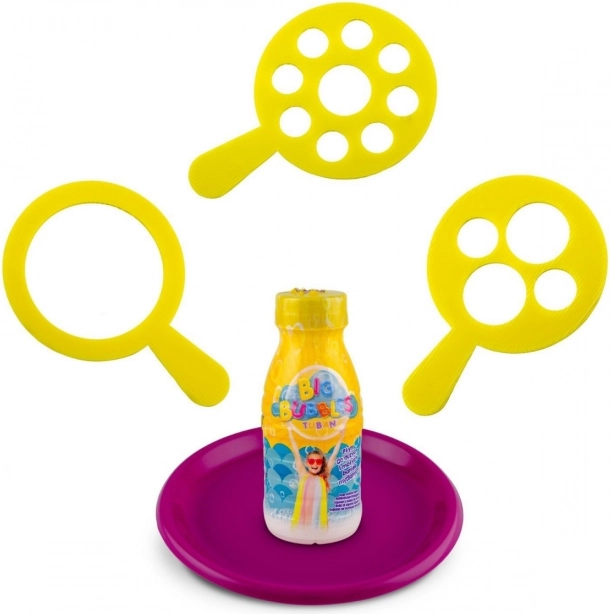 Ulijte otopinu na tanjurić, uronite obruč i jednim potezom stvorite prekrasne, sjajne mjehuriće. Idealno za igru na otvorenom.