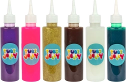 Što se nalazi u setu: 6 gel tekućina (150 ml) u bojama ružičasta, bijela, ljubičasta, tirkizna, smeđa i zlatna sa šljokicama; 10 šablona s motivima slatkiša; čista folija za vlastite nacrte i 3 vrećice aktivatora (5 g). Gel figurice su elastične, šarene i ugodne na dodir – idealne za kreativnu igru.