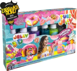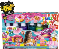 Set TUBI JELLY Slatkiši donosi zabavan ulazak u svijet gel kreacija. Zahvaljujući 6 gel bojama, uključujući zlatnu s glitterom, i tematskim šablonama slatkiša, lako ćete stvoriti vlastite trodimenzionalne gel figurice. Dovoljno je iscrtati konture, ispuniti uzorak, uroniti u aktivator i pustiti da se stvrdne.
