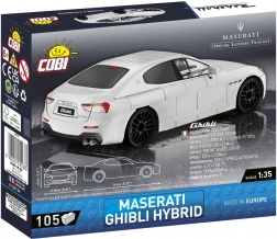 Sastavite kultni sedan MASERATI Ghibli Hybrid u mjerilu 1:35 iz konstrukcijskog seta COBI. Set donosi 105 dijelova, službenu licencu, pokretne kotače s gumenim pneumaticima i precizne višebojne otiske. Dijelovi su kompatibilni s drugim setovima, a model je proizveden u EU – odličan za djecu i odrasle kolekcionare.
