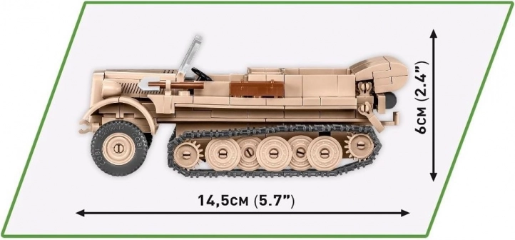 Laki polugusjenični tegljač Sd.Kfz. 10 DEMAG D7, proizvođen 1937.–1945., pripadao je osnovnoj opremi njemačkih motoriziranih topničkih postrojbi. Ovaj konstruktorski set donosi precizan model s vjernim proporcijama, funkcionalnim detaljima i kvalitetnim otiscima koji ne blijede. Model će se odlično uklopiti u vašu zbirku uz vozila kao što su Blitz i Horch u istoj mjerilnoj seriji.