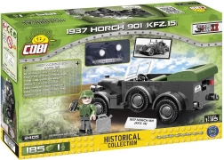 Vjerna replika vozila Horch 901, koje su njemačke oružane snage koristile 1937.–1945., unosi u vašu kolekciju realistične oblike i funkcionalne detalje. Vozilo je bilo korišteno kao stožerni automobil, ambulanta, spojno vozilo, laki topnički tegljač te transporter zaliha i vojnika. COBI model koristi nove tipove kockica za još bolje oblikovanje karoserije i jednostavne preinake.